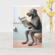 A large, shaggy Irish Wolfhound dog sits on a toilet reading a newspaper titled "Canine News," creating a humourous and whimsical scene.