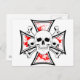 This Iron Cross has three skulls and cross bones. The middle skull is in front of the iron cross while the other two skulls are inside the iron cross. Two bones are crossed behind the iron cross. The Iron Cross has alternating borders of black and white. This design is great for the biker and motorcycle enthusiast.