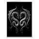 Two silver tribal dragons face each other in this aggressive symmetrical design. The winged serpents have the appearance of being cast out of solid iron which creates a stunning 3D look. The dragons sit on a pure black background creating a striking contrast. The metallic texture and deep silver colour gives this card a stylish look.