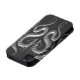 Two silver tribal dragons face each other in this aggressive symmetrical design. The winged serpents have the appearance of being cast out of solid iron which creates a stunning 3D look. The dragons sit on a pure black background creating a striking contrast. The metallic texture and deep silver colour gives this iphone4 case a stylish look.