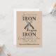 Iron sharpens Iron with crossing knives Christian Men's Retreat Invitations. Simple modern typography. Proverbs 27:17 in the King James Version of the Bible says, "Iron sharpeneth iron; so a man sharpeneth the countenance of his friend". KJV scripture verse. Design also available on a t-shirt and accessories. Add your Church Name/Venue or City/Date of Event/Website or RSVP info.