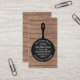 A business card for the food industry featuring an illustration of an iron skillet over a wood background. Personalise the text on front.