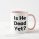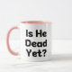This 'Is He Dead Yet?If you appreciate dark humour, true crime, and sarcasm, you'll love this design. It's a great conversation starter and a funny gag, perfect for fans of dark humour and edgy stories.