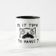 A humorous black-and-white cartoon illustration of a wide-eyed, anxious cat with the text “Is it time to panic?” capturing a funny sense of worry or existential dread.