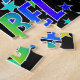 This vibrant, fun, birthday-themed jigsaw puzzle design has the message "HAPPY BIRTHDAY, ISABEL" with the characters having a colorful rainbow spectrum inspired gradient pattern, in addition to an exciting star shapes background pattern. A colorful puzzle like this might be used to send birthday wishes to somebody named Isabel. [~Z0000468]