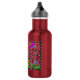 Girl's name Isabella water bottle with pretty whimsical art, purple, pink, lime green flowers and butterflies.