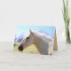 A beautiful palomino horse stands in a windswept pasture. Another view of the horse is on the back of the card. You can personalize this card by changing the name.