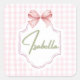 Isabella Personalized Pink Bow & Gingham Print Square Sticker