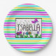 Pretty purple and pink butterflies and flowers with the name Isabella birthday party paper plates.