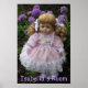Beautiful little doll in pinkish lilac dress,standing in garden with lilac spring flowers in background with the text Isabella's Room.This would make an ideal gift for a little girl (or indeed a big girl!)If desired it can be framed to adorn the wall or the door.