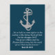 Decorate your space with uplifting words with this fully customizable Bible verse postcard. This design has the verse Isaiah 40:8 in white script and a large silvery gray rope and anchor on a default dark teal blue background. The verse reads "..let us hold on even tighter to the anchor of the living Word of God. For He changes NOT. "The grass withers and the flowers fade away, but the word of our God stands forever." The reverse side of the card is light blue gray. This postcard is fully customizable. Just hit the Personalize button to edit or delete the text, or the Customize button to change the font color, font, reverse side color, or background color if you wish. Makes a great inspirational note or decoration. Great for lovers of God, faith, spirituality, sailors, Navy, Coast Guard, nautical ocean themes, and inspiring messages from the Bible. Photo credit – Pixabay