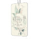 Air freshener with inspirational quote scripture depicts a beautiful floral watercolor design with simple light blue and grey leaves. It features an encouraging Bible Verse Isaiah 41:10, "Do not fear, for I am with you."