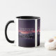 This two-tone mug has a tan paradiso print font with white letters black outline displaying the "Isaiah 44:18" KJV bible scripture verse over a purple coloured picture showcasing light purple coloured clouds englufing a mountain range in the distant background of the same colours under a darker sky with the sun glowing creating a skyline with dual colours. This verse is referencing the Book Of Isaiah 44th chapter showing the 18th verse in this bible scripture quote theme from the King James bible. The rim & handle are glazed in matching colours available in 11-ounce or 15-ounce sizes microwave and dishwasher safe ceramic construction.