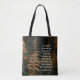 Inspirational quote scripture tote bag depicts a nature photograph with a wheat coloured fern and brown wooded background. It features Bible Verse Isaiah 46:4, "Even to your old age and grey hairs I am he, I am he who will sustain you. I have made you and I will carry you; I will sustain you and I will rescue you."