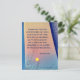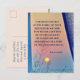 Inspirational scripture postcard depicts a nature photograph of a golden sunset with a pink and blue sky, framed by a blue curtain and wooden post. It features Bible Verse Isaiah 61:10, "I delight greatly in the Lord; my soul rejoices in my God. For he has clothed me with garments of salvation and arrayed me in a robe of His righteousness."