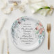 Beautiful inspirational quote Christmas paper plate depicts watercolor poinsettia bouquets and features a portion of Bible Verse Isaiah 9:6, "For unto us a child is born. He will be called Wonderful, Counsellor, Mighty God, Everlasting Father, Prince of Peace."