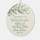 Personalise this unique simple stylish green on cream Christmas ceramic ornament with your family name. Isaiah 9:6 written in modern elegant typography is on one side and the family name on the other side. "Wonderful Counsellor, Mighty God, Everlasting Father, Prince of Peace" in evergreen sage green script. Customise the text with your own words or leave the words "Merry Christmas from the" if desired. I created this one-of-a-kind hand drawn elegant evergreen toned pine branch and berries on an off white background. The contemporary Christian faith design is in a natural pine toned gradient. It is a beautiful neutral green and white Inspirational Bible Verse for stylish home holiday decoration with a personal message. Be sure to add your family name on the back side of this religious scripture. I have added this unique botanical design to other lovely personalised Christmas or holiday gifts in this collection.