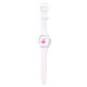 I had two concerns when ordering this watch - one that the watchband didn't look that glittery and two that the dial would be too large. Neither was a problem at all. The watch band is nice and glittery for a touch of bling. As to the size, I have small bones so I tend to like smaller looking accessories and I am quite comfortable with this. Neither too large or too small. The outside edge to edge on the dial is 1 1/4" the inside image is 1 inch.