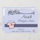 Celebrate a beautiful Aqiqa for your little daughter - and start to invite all friends and family with this beautiful Islamic invitation card. On the front side, the name of your baby is written under 'Bismillah' - In the name of Allah - and the father and mother are added. On the back you will find a beautiful print of a hadith about the Islamic celebration of Aqiqa. All fields are customisable to your needs.