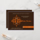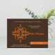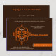 Lovely and very unique Islamic Aqiqah invitation card with ornate damask print in the shape of a key, colours are brown, orange and white, Arabic - Asian design. Islamic saying of Basmallah: In the name of Allah, Most Gracious, most Merciful.