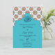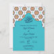 Crafted from sleek matte white cardstock embellished by a replicating blue and green mosaic tile centerpiece, your wedding details stand out distinctly written in an ornate Arabic calligraphy font.