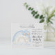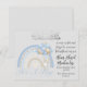 This simple design features the words "Masha Allah Tabarak Allah" in arabic calligraphy, and an illustration of a blue and silver rainbow and bunny with ballons. You can alter the background colour, and font, as well as the message.