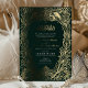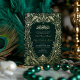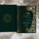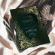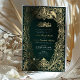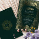 Embrace the opulence of the Ottoman era with this captivating wedding invitation, rich in the royal hues of emerald green and gold. The design takes inspiration from Art Nouveau and the sumptuous artistry of Turkish decoration, creating an aura of sophistication and timeless romance. Gold foil accents glimmer against the deep green background, highlighting the intricate floral and scrollwork that adorns the borders. Central to the design is the elegant script announcing the couple's union, flanked by traditional Islamic calligraphy, lending a sense of heritage and celebration. This invitation is a true testament to a love that is as enduring as the classic art forms it honours.