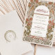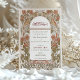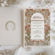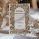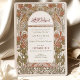 This stunning Islamic wedding invitation features a beautifully intricate floral design in rich autumnal shades of burnt orange and green, set against a classic cream background. The invitation incorporates elegant Arabic calligraphy at the top, adding a unique and cultural touch that perfectly complements the sophisticated Art Nouveau elements. The detailed artwork frames the wedding details, creating a harmonious blend of traditional and modern styles. The back of the invitation includes a delicate monogram, further enhancing its luxurious appeal. Ideal for an elegant fall wedding, this invitation is sure to impress your guests and set the tone for a memorable celebration.