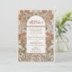 This stunning Islamic wedding invitation features a beautifully intricate floral design in rich autumnal shades of burnt orange and green, set against a classic cream background. The invitation incorporates elegant Arabic calligraphy at the top, adding a unique and cultural touch that perfectly complements the sophisticated Art Nouveau elements. The detailed artwork frames the wedding details, creating a harmonious blend of traditional and modern styles. The back of the invitation includes a delicate monogram, further enhancing its luxurious appeal. Ideal for an elegant fall wedding, this invitation is sure to impress your guests and set the tone for a memorable celebration.