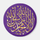 Convenient round refrigerator magnet printed with the Islamic shahada in golden calligraphy on a purple background for Muslims. Please check my store for a wide variety of Muslim products and gift ideas, insha'Allah. Barak Allah Fikum and Jazakum Allah Khair!