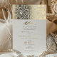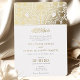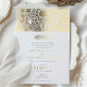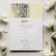 This exquisite wedding invitation merges the intricate beauty of Victorian design with the elegant script of Islamic art. The front cover features a symmetrical Victorian floral pattern in gold, accented with a pair of love birds, each carrying an initial from the couple's names. The interior of the invitation reveals a harmonious blend of traditional English and Arabic calligraphy, inviting guests to celebrate the union. The invitation details are set against a textured white background that enhances the legibility of the text, while the gold design elements resonate with the richness of both cultures. This invitation is a beautiful testament to a wedding that embraces cultural fusion with grace and style.