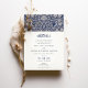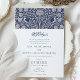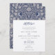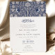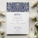 This exquisite wedding invitation is a beautiful representation of cultural harmony, blending the intricate designs of Victorian art with the elegant calligraphy of Islamic tradition. The deep navy blue provides a rich canvas for the elaborate white and gold patterns and motifs that adorn the card, including the graceful love birds that symbolise the couple's unity. The front of the invitation showcases the names of the couple in a fusion of English and Arabic scripts, conveying respect and inclusivity. This invitation is not merely an announcement but a celebration of two families coming together, honouring both their distinct and shared heritages.