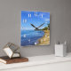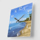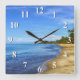 Island Beach Blue Water and Sky Clock. White Numbers.