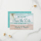 Island Breeze Painted Beach Scene, with Ocean Waves, Sandy Beach, and Palm Trees, with a beautiful teal blue sky. With Modern Typography Script Fonts. A Summer Tropical Beach, Or destination wedding design - Personalised Wedding Save the Date Cards!