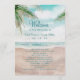 Island Breeze Painted Beach Scene, with Ocean Waves, Sandy Beach, and Palm Trees, with a beautiful teal blue sky. With Modern Typography Script Fonts. A Summer Tropical Beach, Or destination wedding design - Personalised Wedding Ceremony Program!