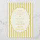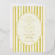 This statement wedding design is perfect for couples looking for a chic, cheerful, preppy, or vintage design with a bold color palette. The eye-catching design features rich, vertical lemon yellow and ivory stripes paired with a charming scalloped edge oval, giving it a unique, classic-with-a-twist aesthetic.