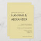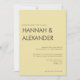 A modern minimalist wedding invitation featuring clean typography and a warm island citrus yellow background.