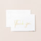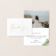 Elegant gold foil wedding photo thank you card. Inside of card features watercolor botanical island floral arrangements in shades of peach, coral, blush and green. Personalise text, customise font style and size.