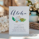 Aloha! Throwing a Hawaiian or luau themed wedding welcome dinner before the big day? Invite friends and family with our cute wedding welcome dinner invitations, featuring a bouquet of tropical flowers in elegant beachy hues, and "aloha" in chic modern calligraphy script lettering. Cards reverse to solid aqua.