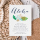 Aloha! Throwing a Hawaiian or luau themed baby shower? Invite friends and family to celebrate the mama to be with our island chic gender neutral baby shower luau invitations, featuring a bouquet of tropical flowers in elegant beachy hues, and "aloha" in chic modern calligraphy script lettering. Cards reverse to solid aqua.