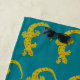 Mosaic, graphic drawing, of Gecko lizard, displayed in, reptile-like, skin pattern-in colours of gold, fuschia, lime, teal, brown, and black.