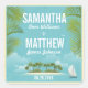 Tropical island, sailboat, and seagulls beach destination wedding gift label.