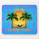 I'm On Island Time artwork and designs. Island time is a reference to how life is on islands, people are more apt to slow down and enjoy life. Rather than the normal rat race we live in on the main land. Man chillaxing in a hammock between two palm trees watching the sunset over the ocean with a ocean blue background and pink Hawaiian Honu Turtles and Tiki masks pattern.