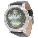 Transport yourself to a tropical paradise with this enchanting "Nautical Window" wall clock. Designed to evoke a sense of vacation and relaxation, it features a serene landscape with palm trees, a sailboat on the blue water, and a picturesque seashore. This rustic and artistic timepiece is perfect for interior design, bringing the calm of the ocean and the beauty of nature directly into your home decor. Its vintage charm and nautical appeal create a serene environment, making it a unique and decorative piece of wall art that beautifully captures the essence of a tropical beach.