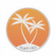Two swaying palm trees over a bright orange sun promote an "island vibes" state of mind. The whimsical text "island vibes" can be personalised with your desired text, name or monogram.