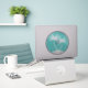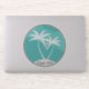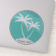 Two swaying palm trees over an aqua round shape promote an "island vibes" state of mind. The whimsical text "island vibes" can be personalised with your desired text, name or monogram.