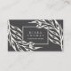 Island chic business cards feature your name and/or business name in ivory on a charcoal grey background, framed by creamy off-white tropical leaves in a vintage hand drawn style. Personalise with your contact information on the reverse side in grey in ivory, accented with smaller leaves.