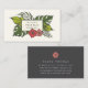 Tropical chic business cards feature your name and/or business name nestled in a frame of green banana and monstera leaves with red and coral hibiscus flowers illustrated in a vintage hand drawn style, on a soft ivory background. Personalise with your contact information on the reverse side in ivory on charcoal grey with a matching coral hibiscus.
