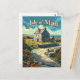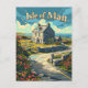 A nostalgic and picturesque depiction of the Isle of Man, situated in the Irish Sea between Great Britain and Ireland. The design highlights the island's rugged coastline, rolling green hills, and historic landmarks such as Peel Castle and the Laxey Wheel. Rendered in a vintage style, the artwork captures the timeless allure and natural beauty of the Isle of Man, inviting viewers to explore its rich heritage and scenic landscapes.