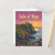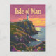 A charming and nostalgic depiction of the Isle of Man, situated in the Irish Sea between Great Britain and Ireland. The design highlights the island's rugged coastline, rolling green hills, and historic landmarks such as Peel Castle and the Laxey Wheel. Rendered in a vintage style, the artwork captures the timeless allure and natural beauty of the Isle of Man, inviting viewers to explore its rich heritage and scenic landscapes.